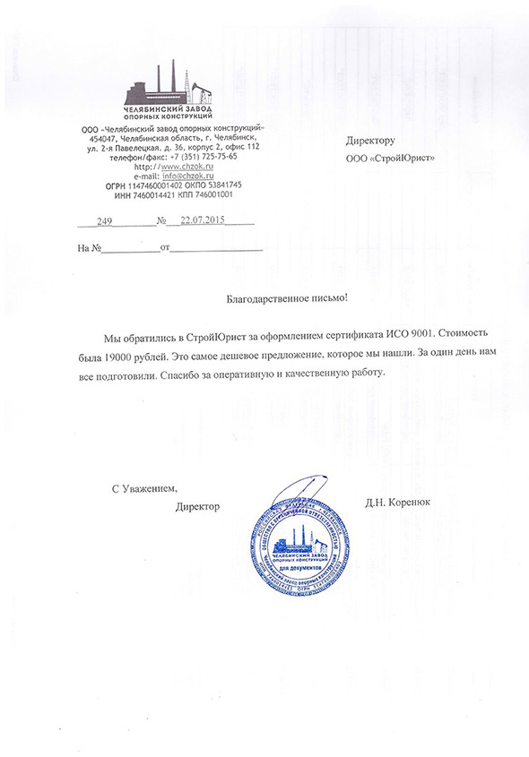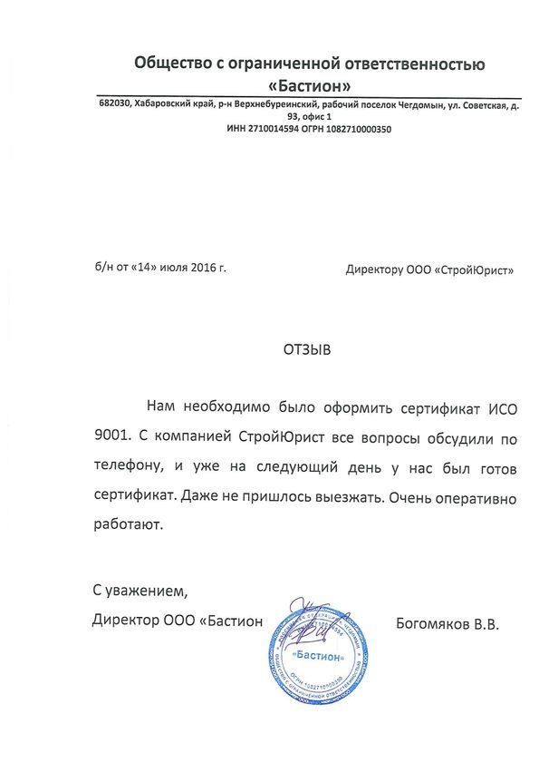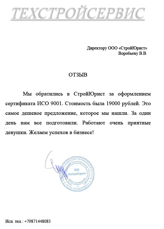 Отзывы клиентов "СтройЮрист" по ISO в Саранске