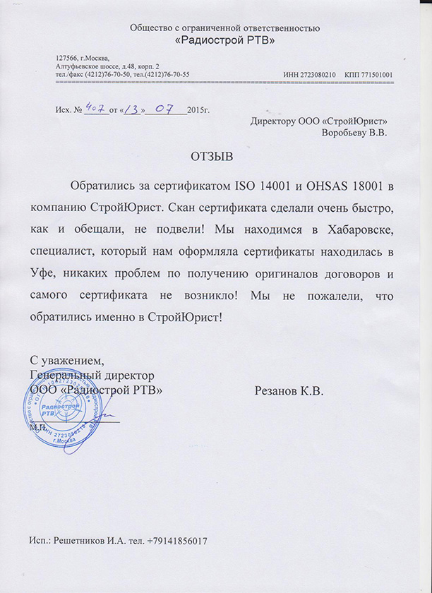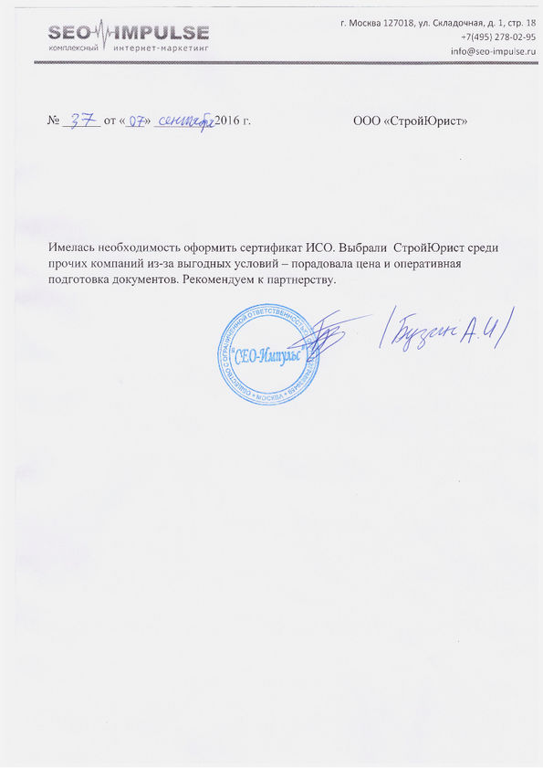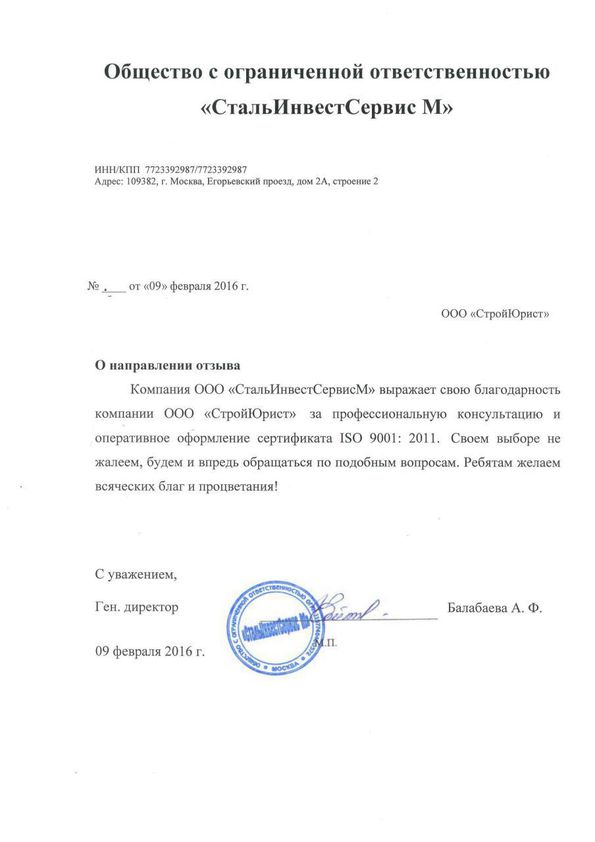 Отзывы клиентов "СтройЮрист" по ISO в Саранске