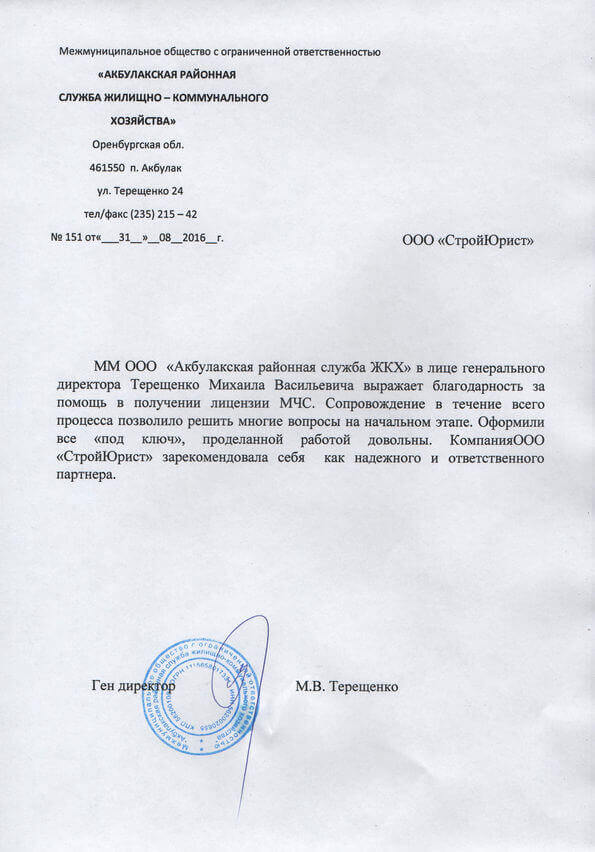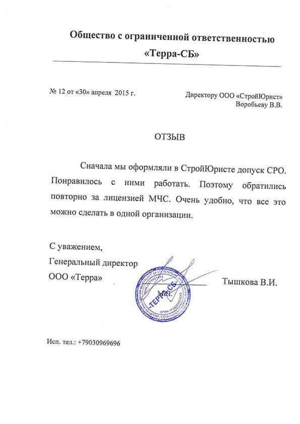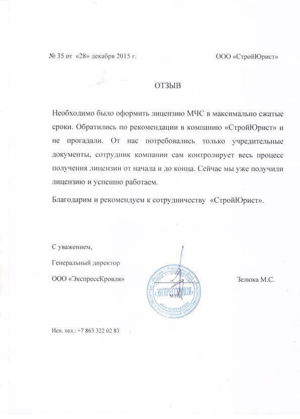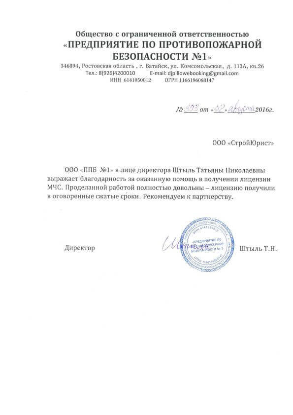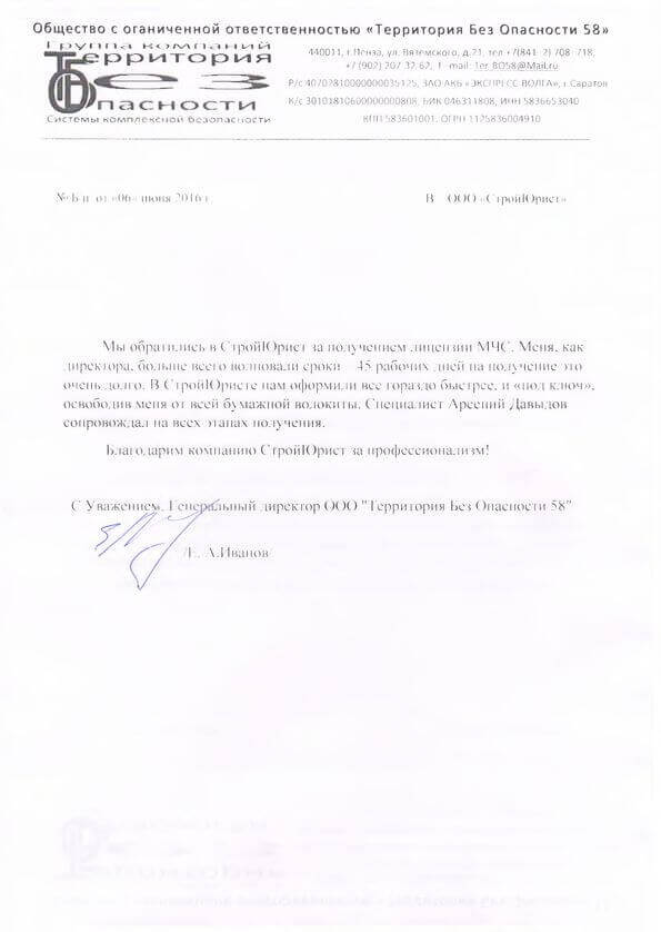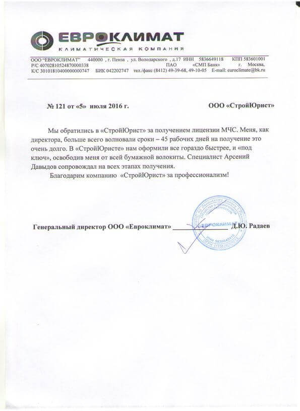 Отзывы клиентов "СтройЮрист" по лицензированию МЧС в Саранске