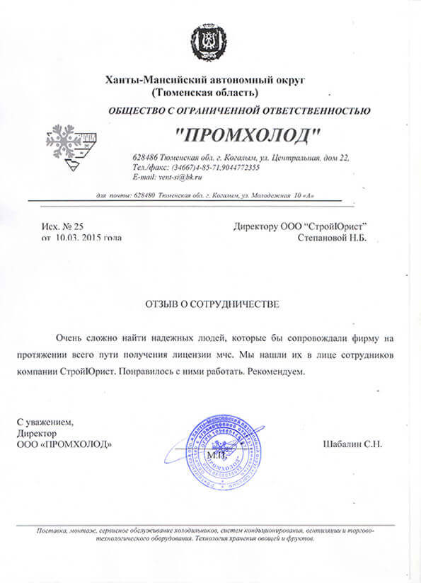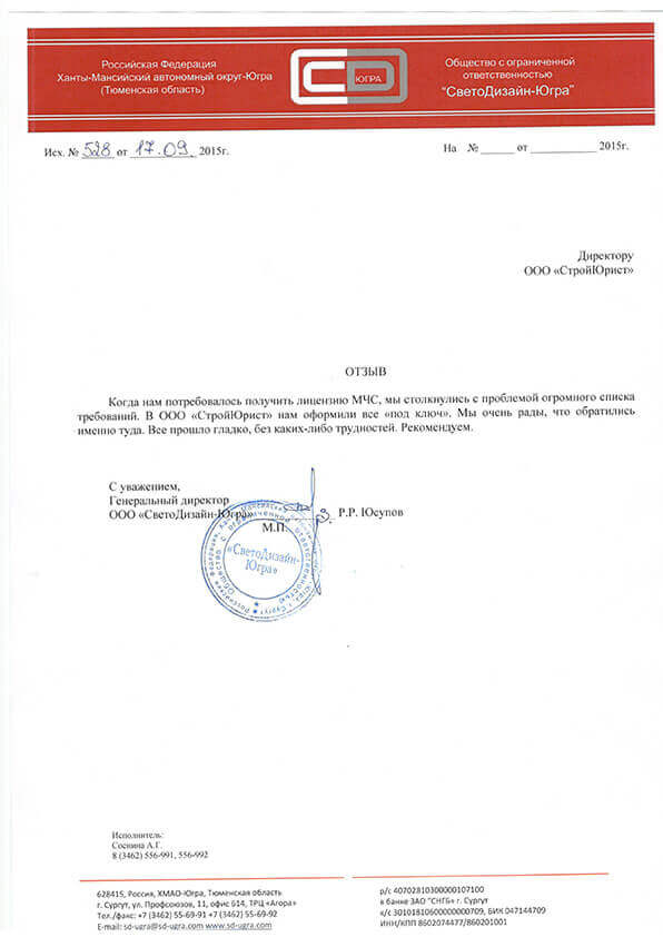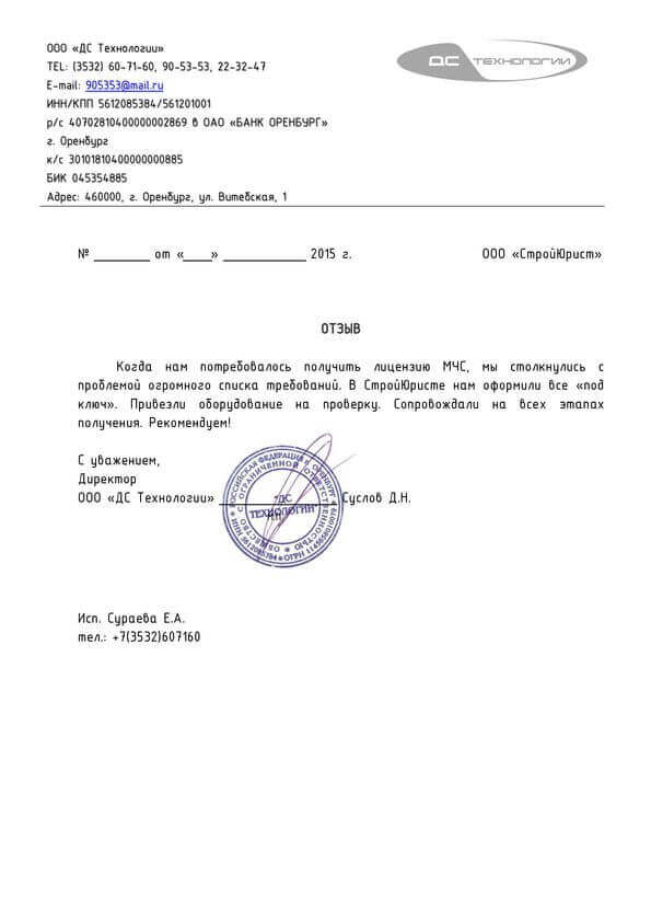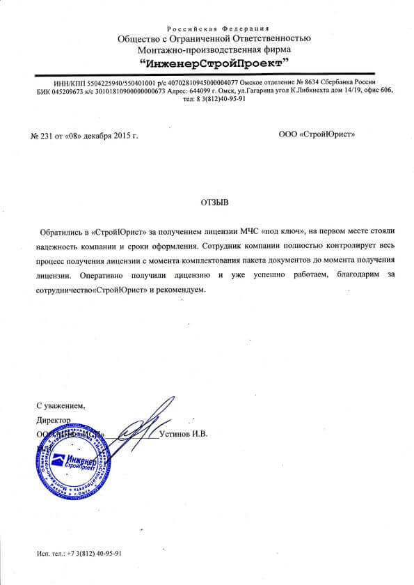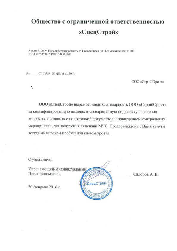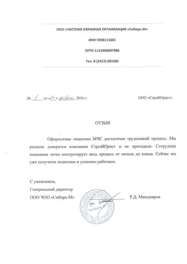 Отзывы клиентов "СтройЮрист" по лицензированию МЧС в Саранске