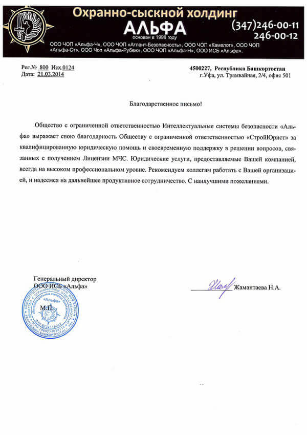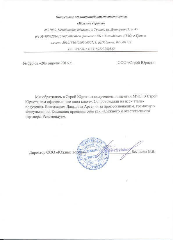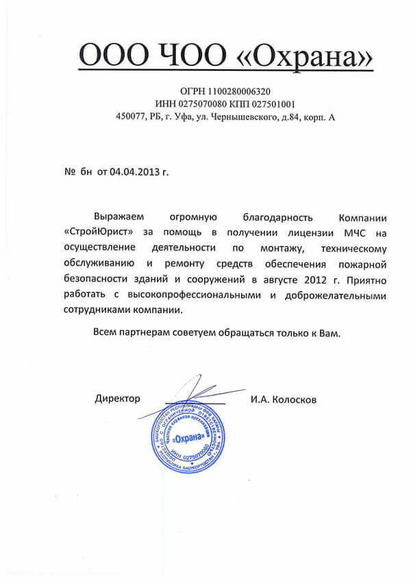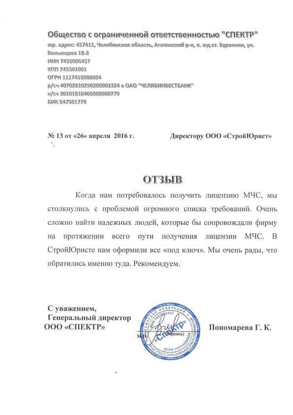 Отзывы клиентов "СтройЮрист" по лицензированию МЧС в Саранске