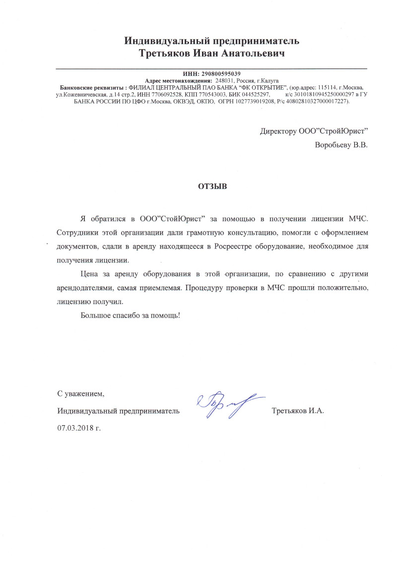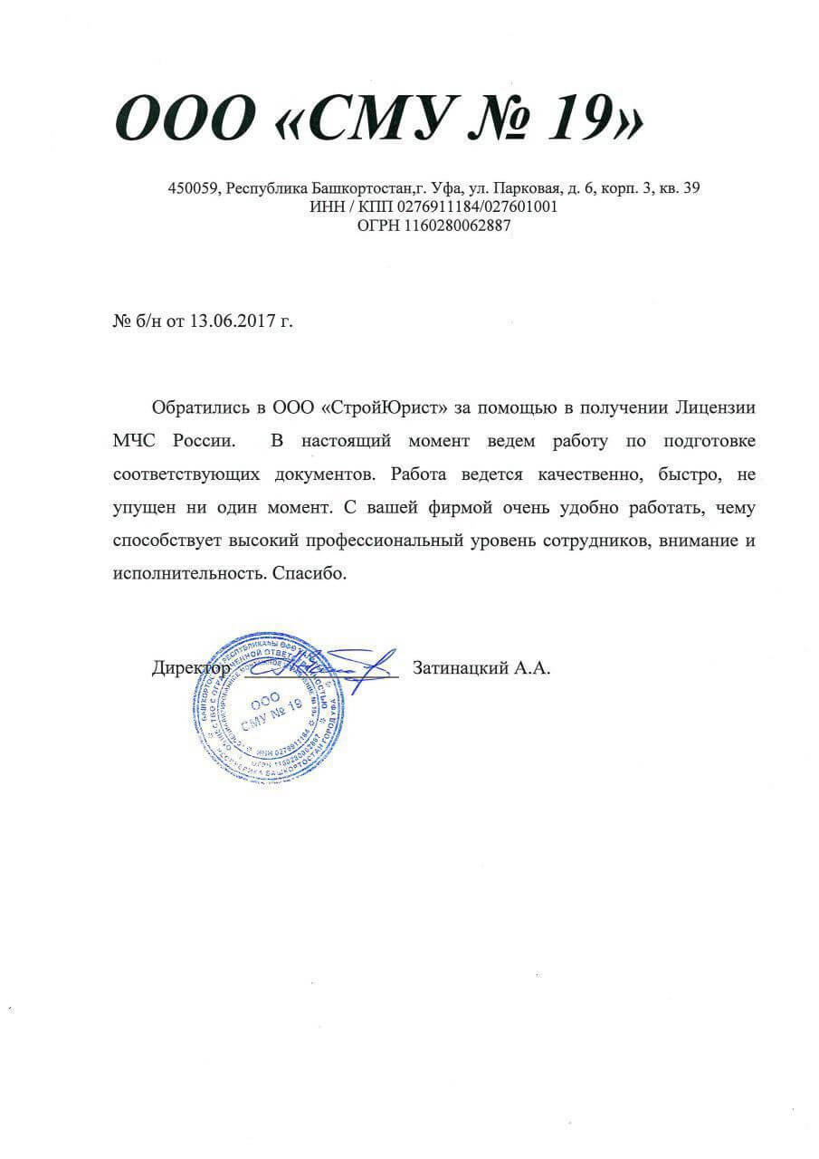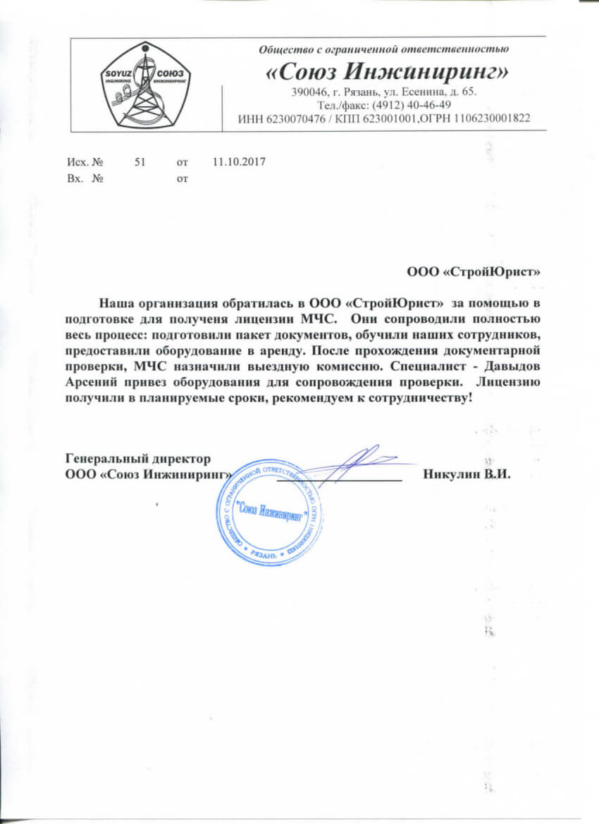 Отзывы клиентов "СтройЮрист" по лицензированию МЧС в Саранске