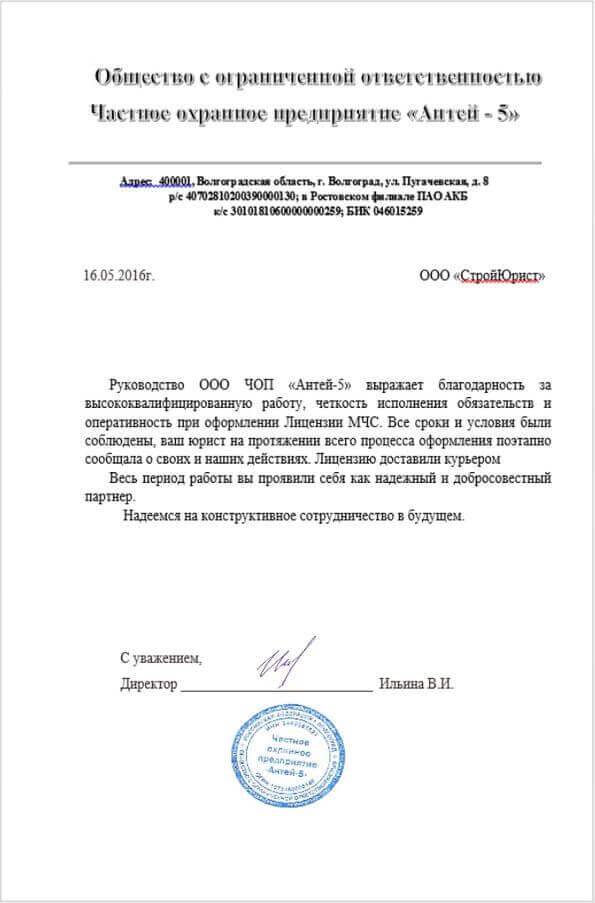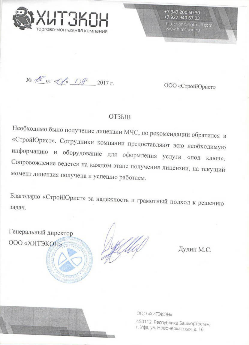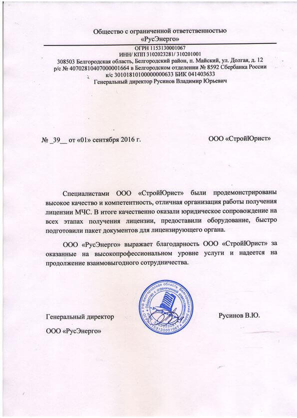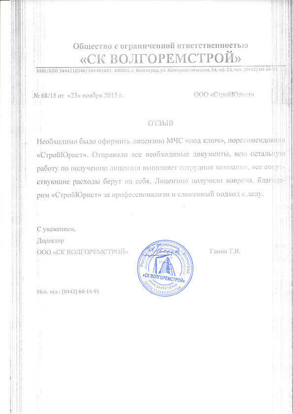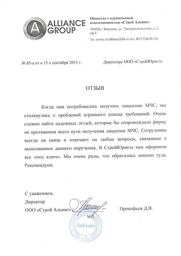 Отзывы клиентов "СтройЮрист" по лицензированию МЧС в Саранске