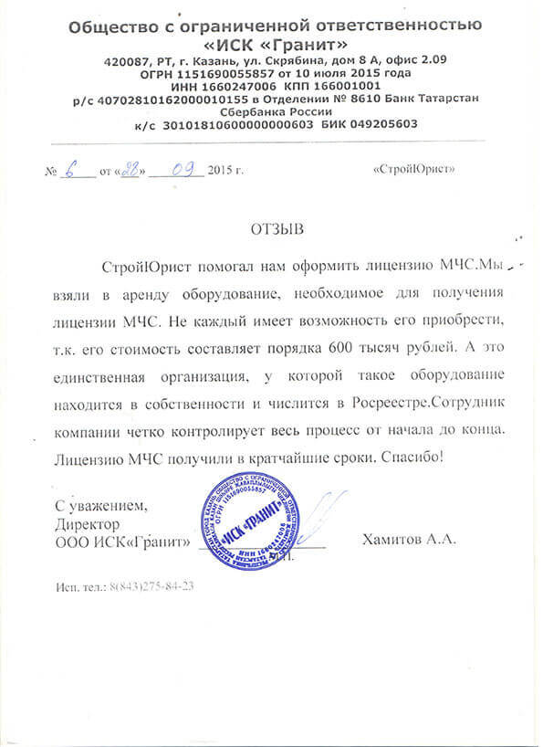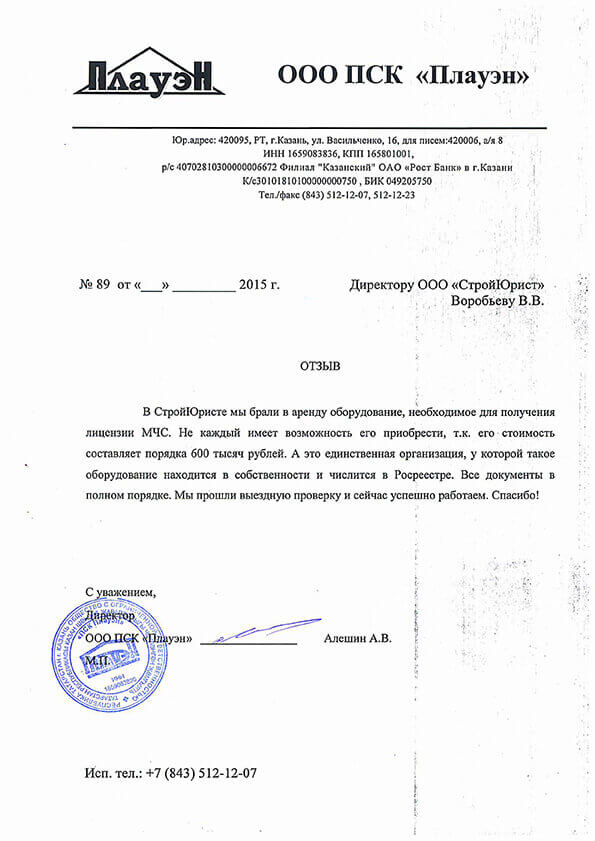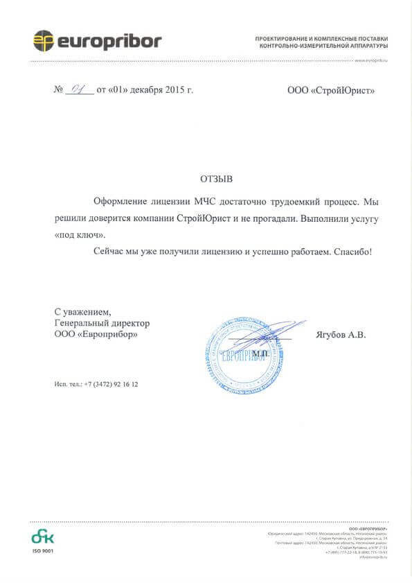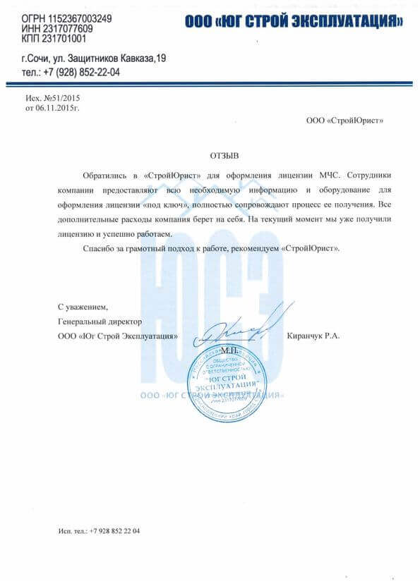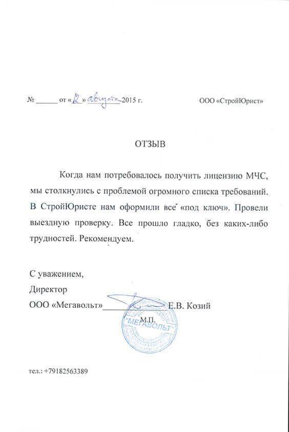 Отзывы клиентов "СтройЮрист" по лицензированию МЧС в Саранске