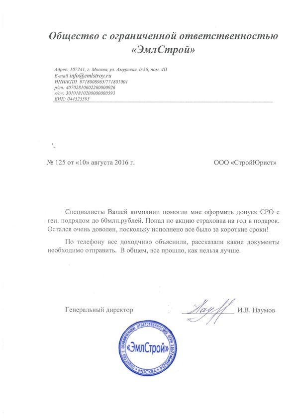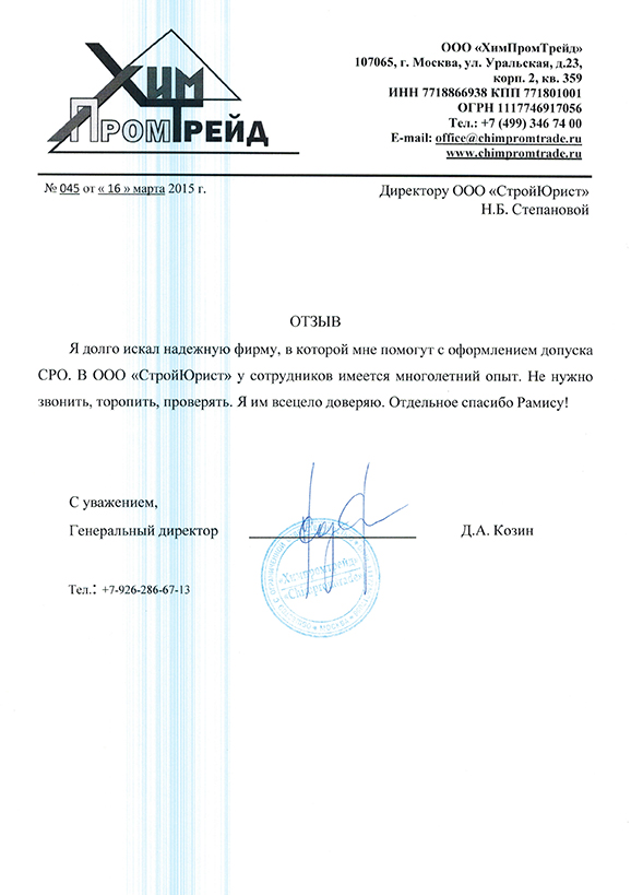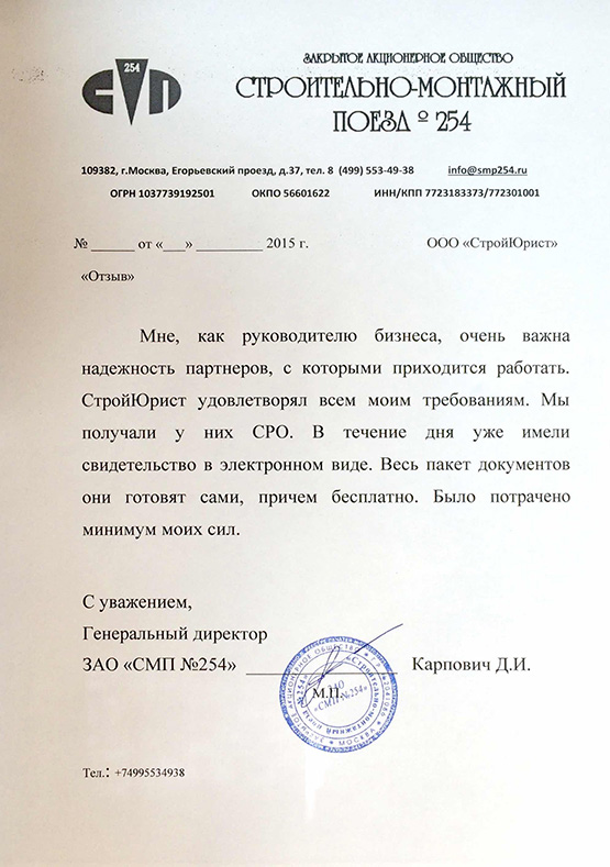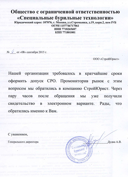 Отзывы клиентов "СтройЮрист" по вступлению в СРО в Саранске