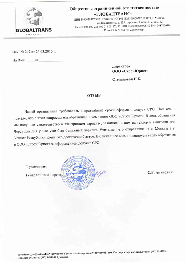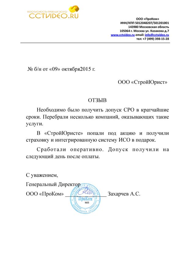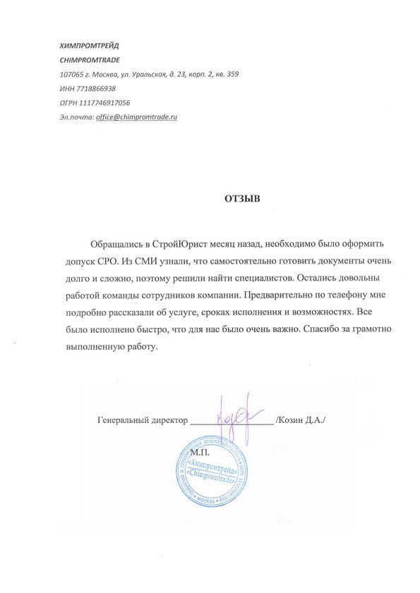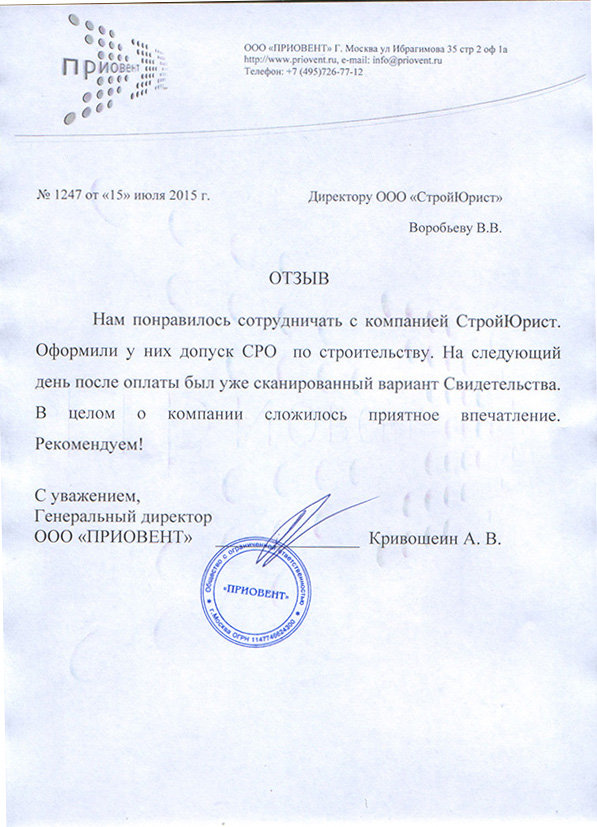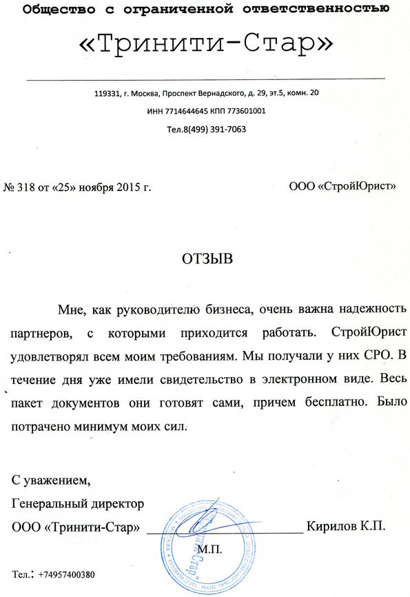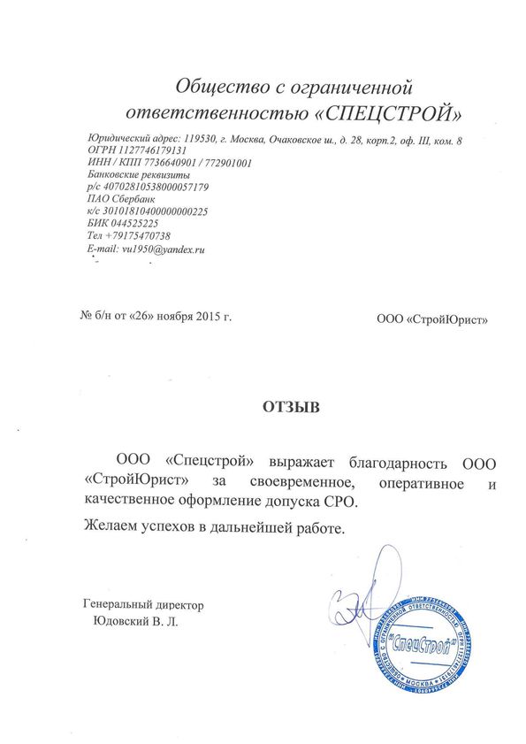 Отзывы клиентов "СтройЮрист" по вступлению в СРО в Саранске