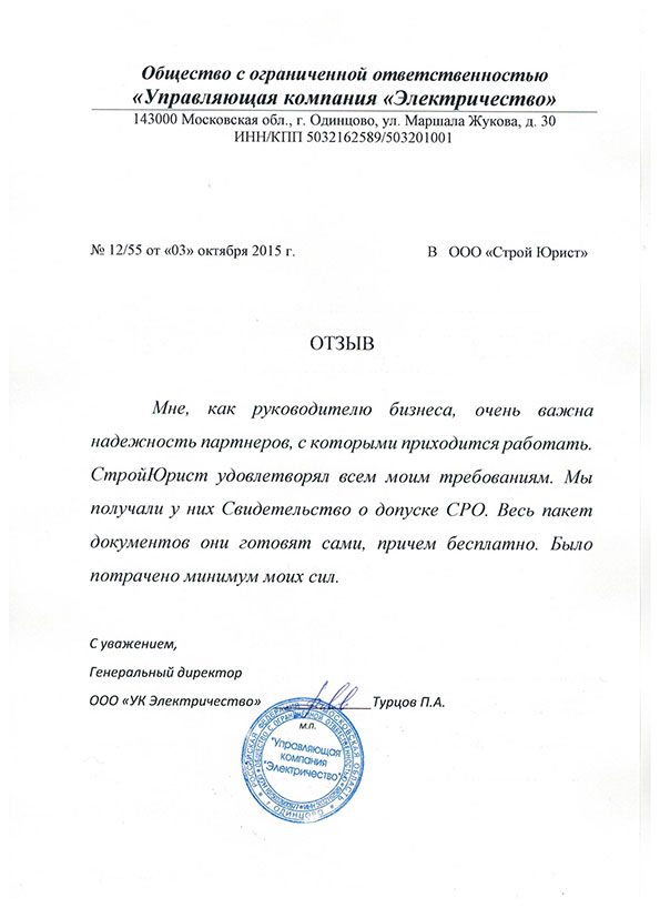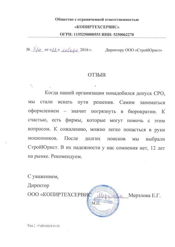 Отзывы клиентов "СтройЮрист" по вступлению в СРО в Саранске