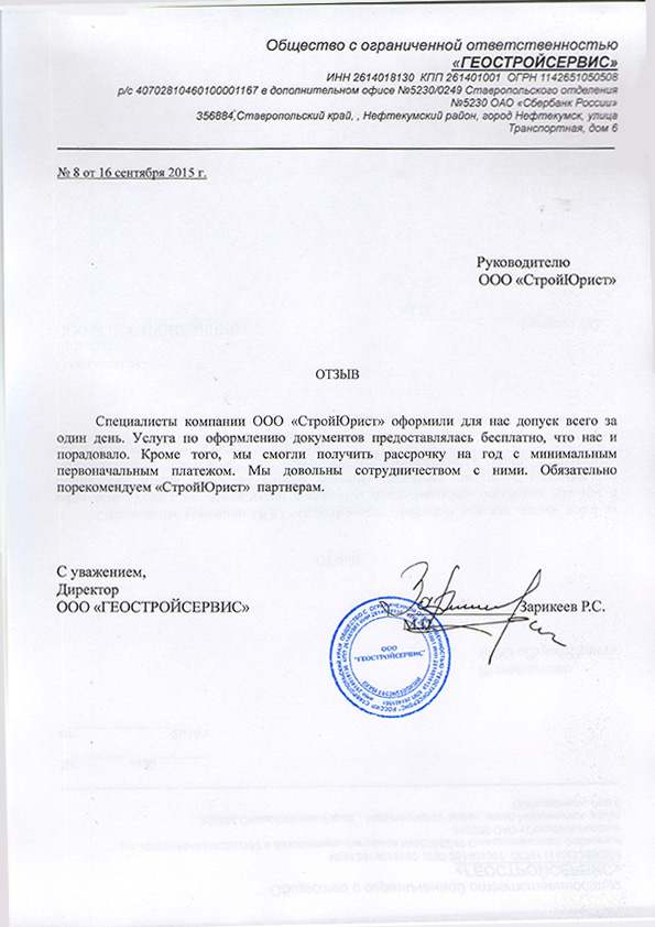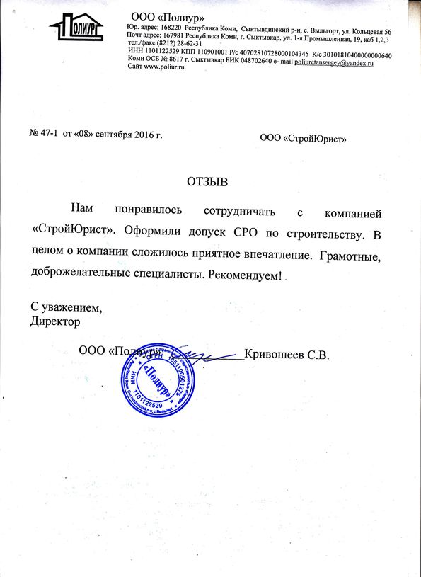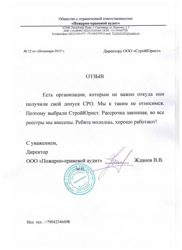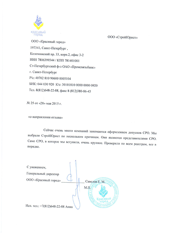 Отзывы клиентов "СтройЮрист" по вступлению в СРО в Саранске