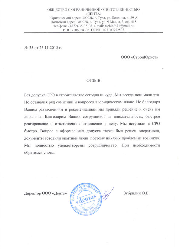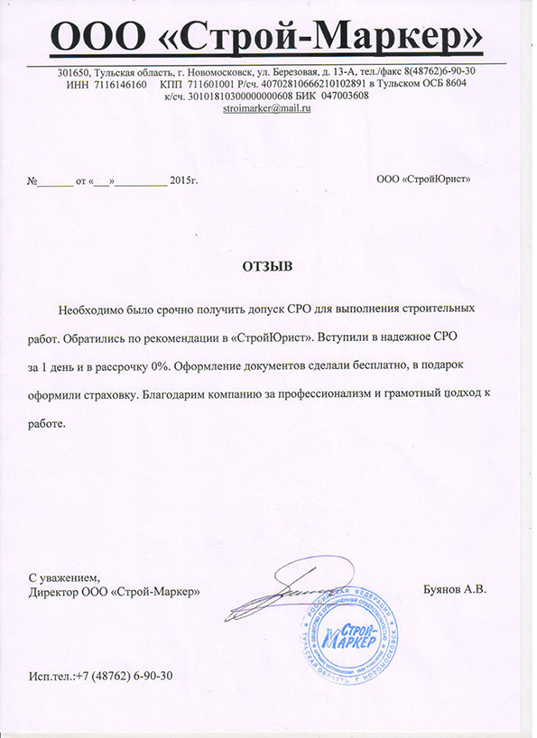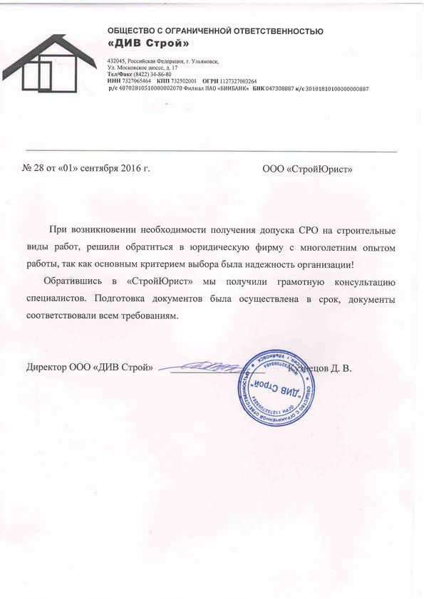 Отзывы клиентов "СтройЮрист" по вступлению в СРО в Саранске