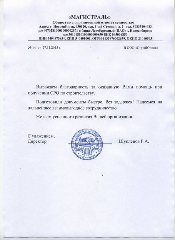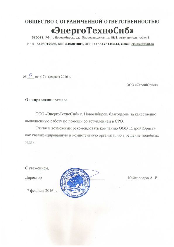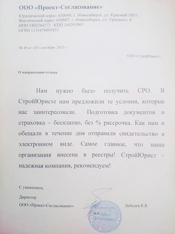 Отзывы клиентов "СтройЮрист" по вступлению в СРО в Саранске