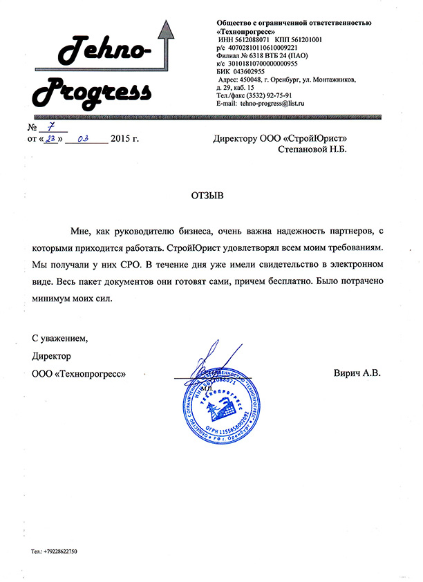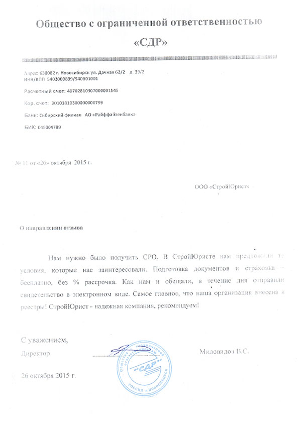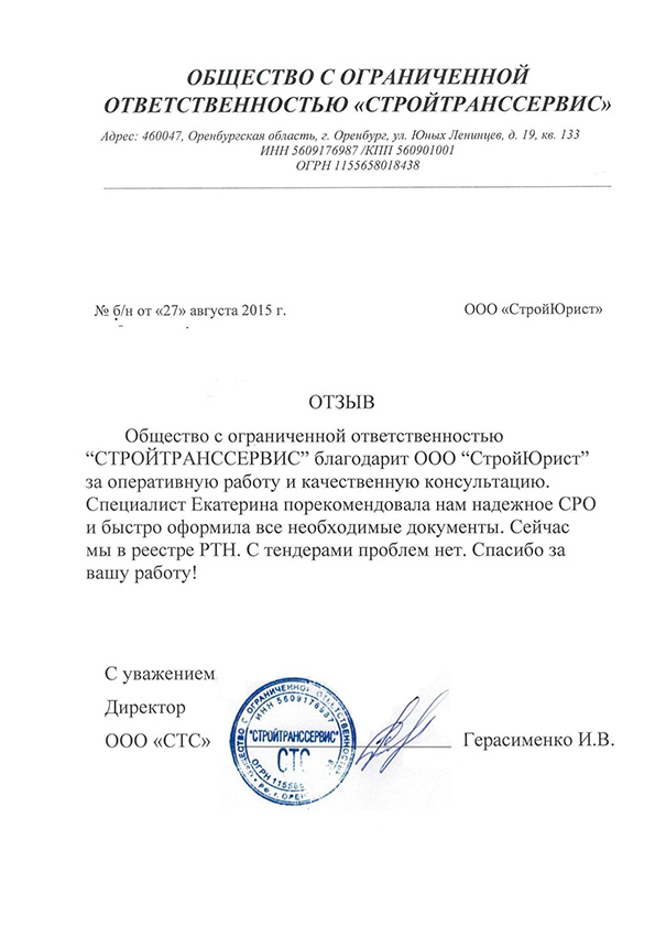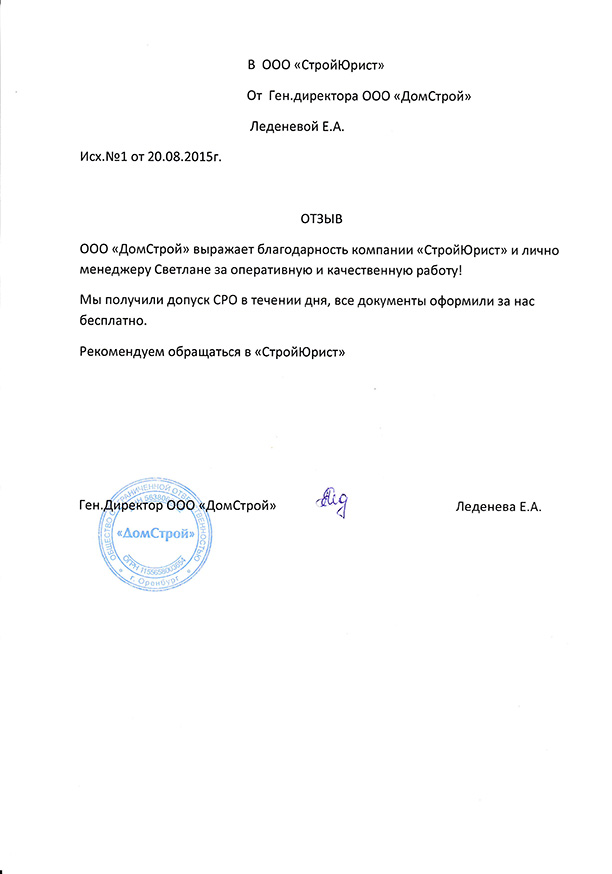Отзывы клиентов "СтройЮрист" по вступлению в СРО в Саранске