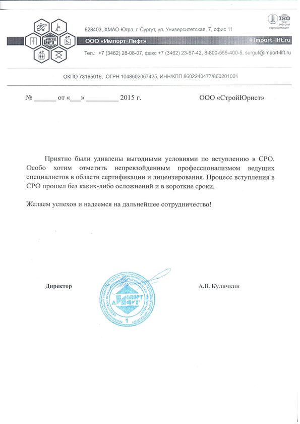 Отзывы клиентов "СтройЮрист" по вступлению в СРО в Саранске