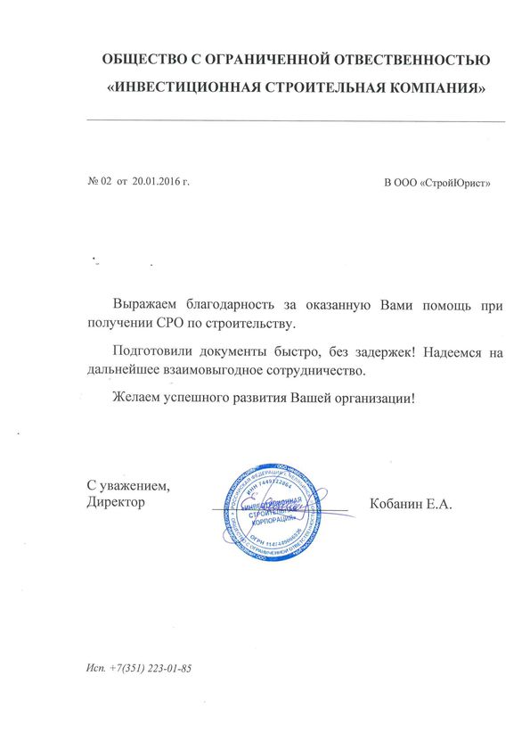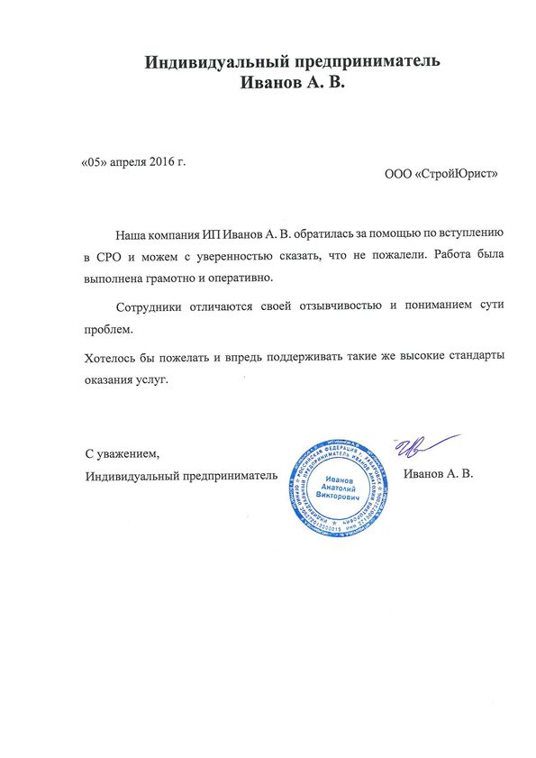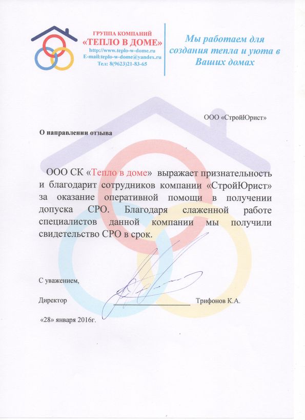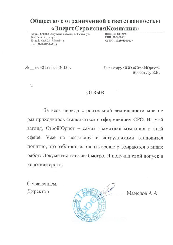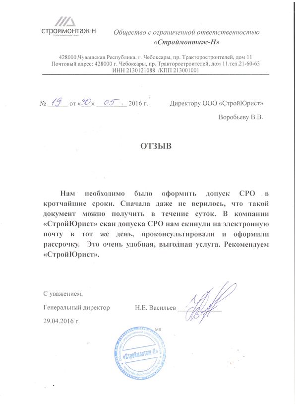 Отзывы клиентов "СтройЮрист" по вступлению в СРО в Саранске