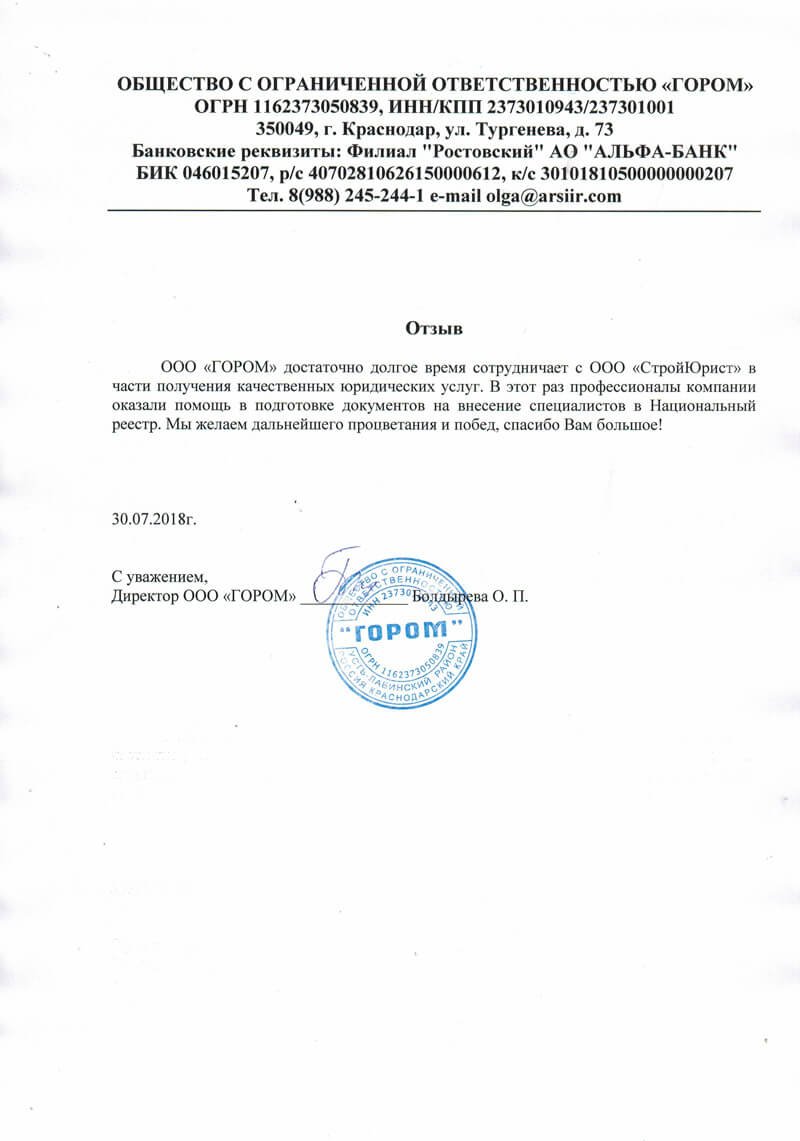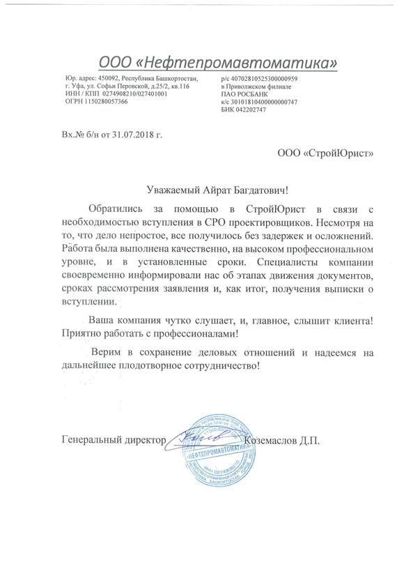 Отзывы клиентов "СтройЮрист" по вступлению в СРО в Саранске