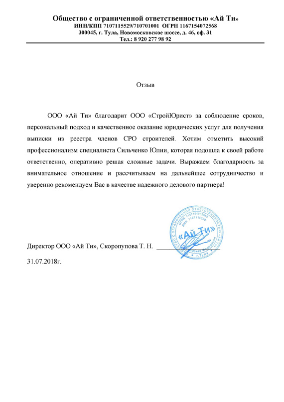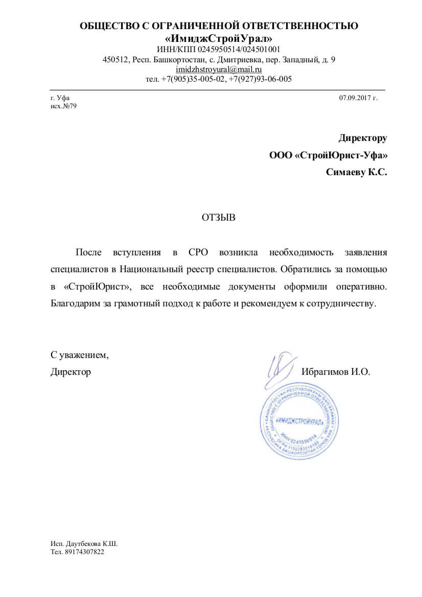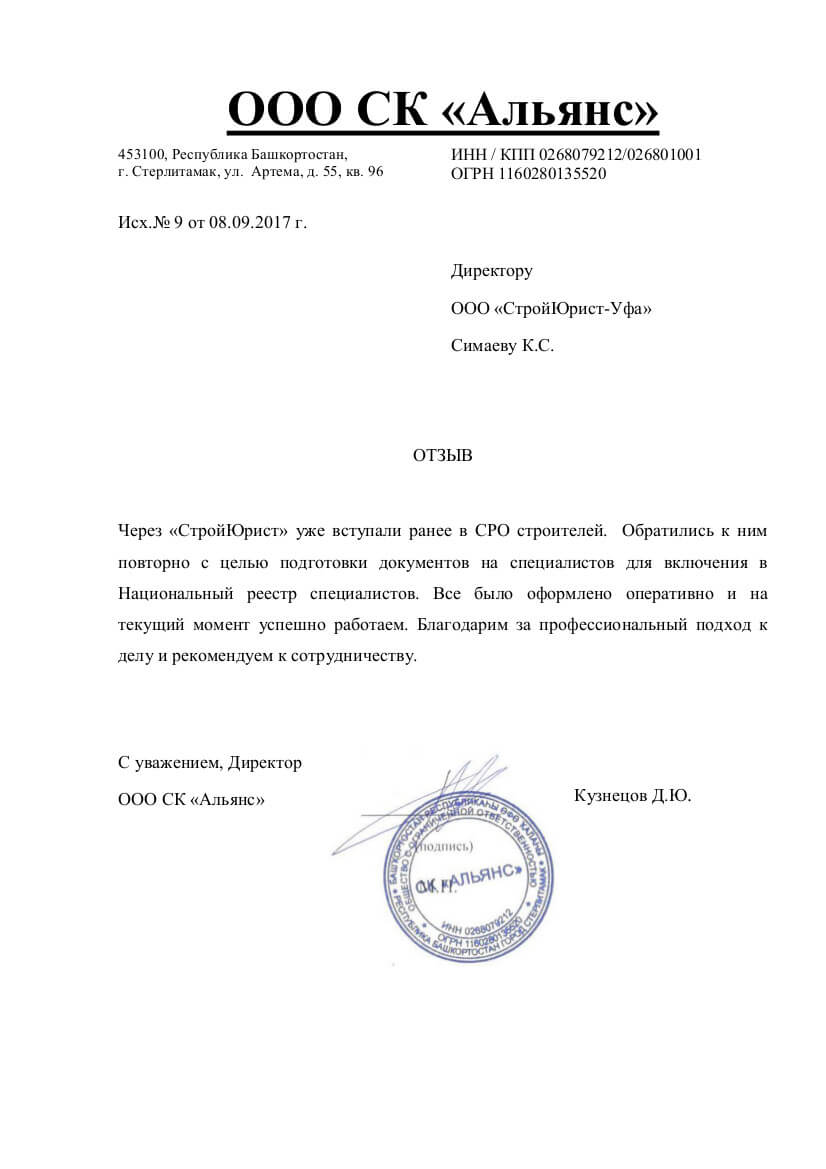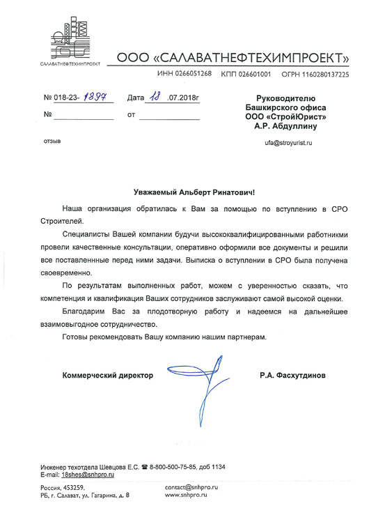 Отзывы клиентов "СтройЮрист" по вступлению в СРО в Саранске