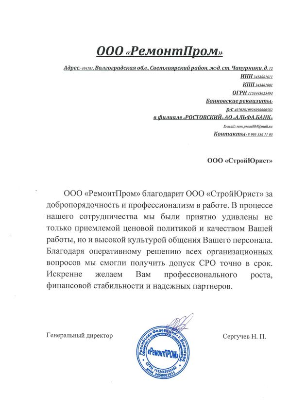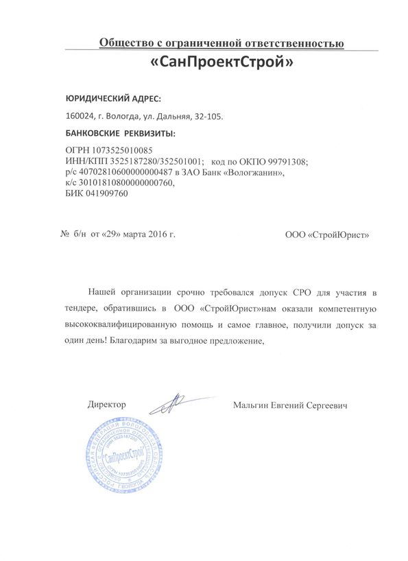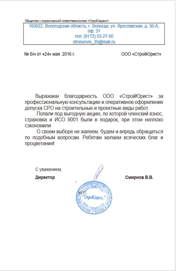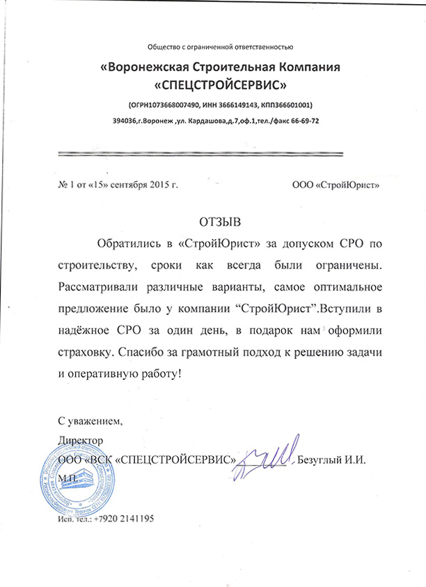 Отзывы клиентов "СтройЮрист" по вступлению в СРО в Саранске